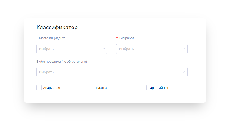 - Можно настроить автоматическое присвоение признака заявке: аварийная, платная или обычная, без ручного проставления.