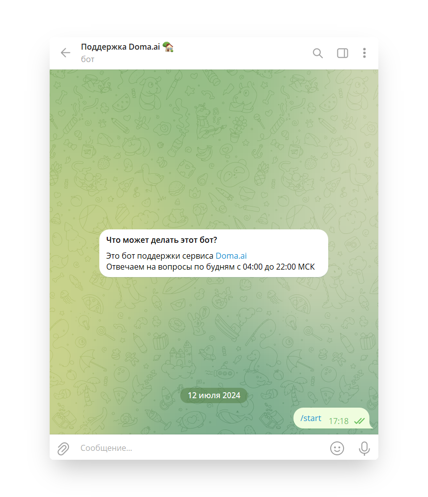 Также вы можете написать нам на почту helpmobile@doma.ai.
