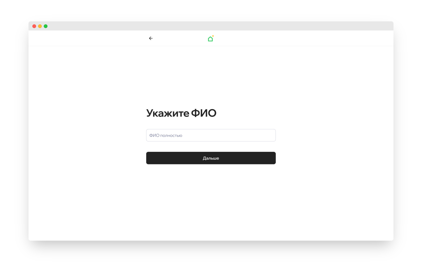 - Укажите ФИО и нажмите кнопку «Дальше».