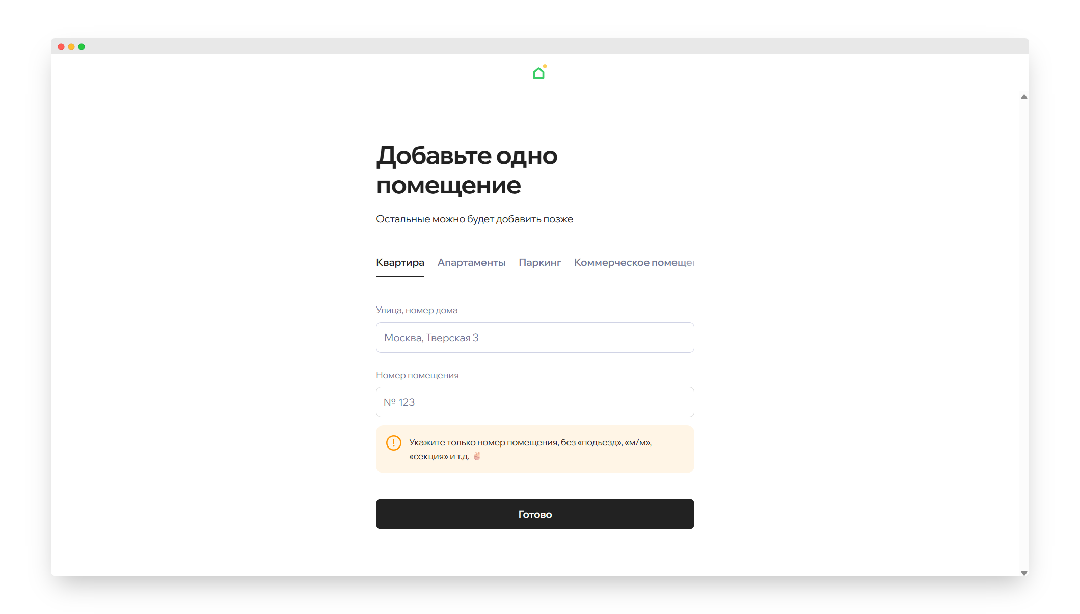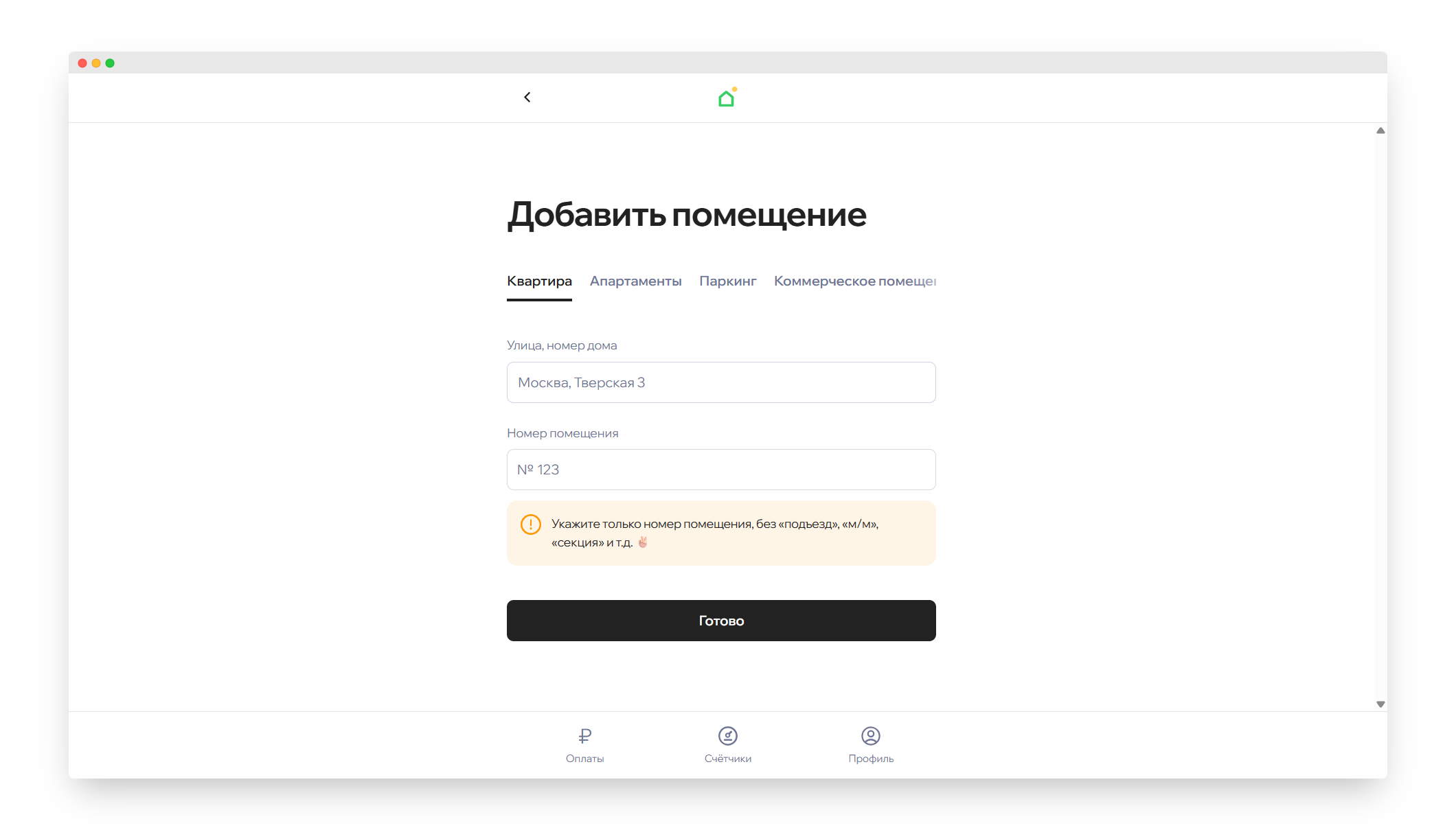 Если вы собственник нескольких помещений, то сможете добавить их в личный кабинет:
