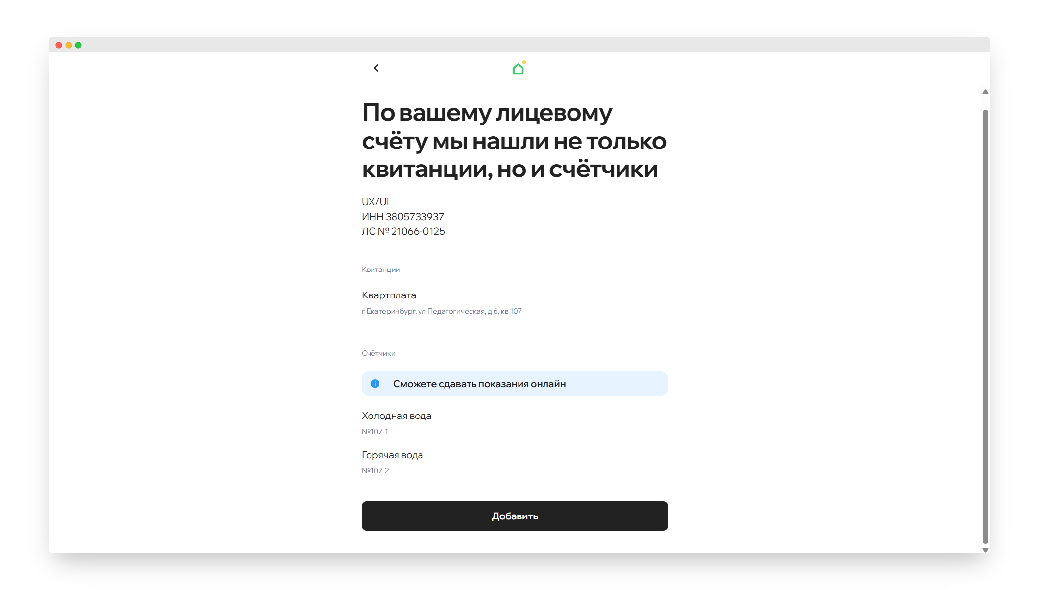 Если по вашему адресу и лицевому счету загружены также приборы учета, то на экране появится сообщение об этом.