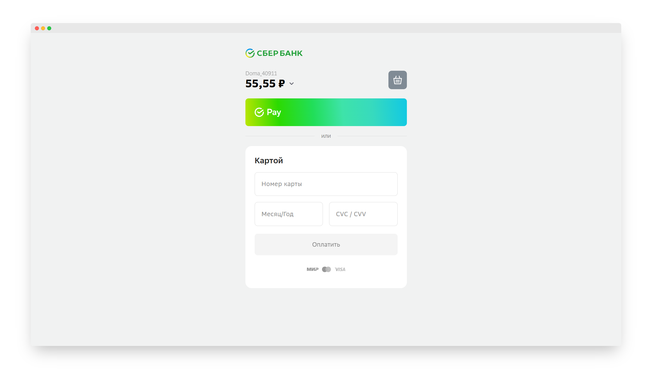 - Введите реквизиты карты или выберите способ оплаты через SberPay.