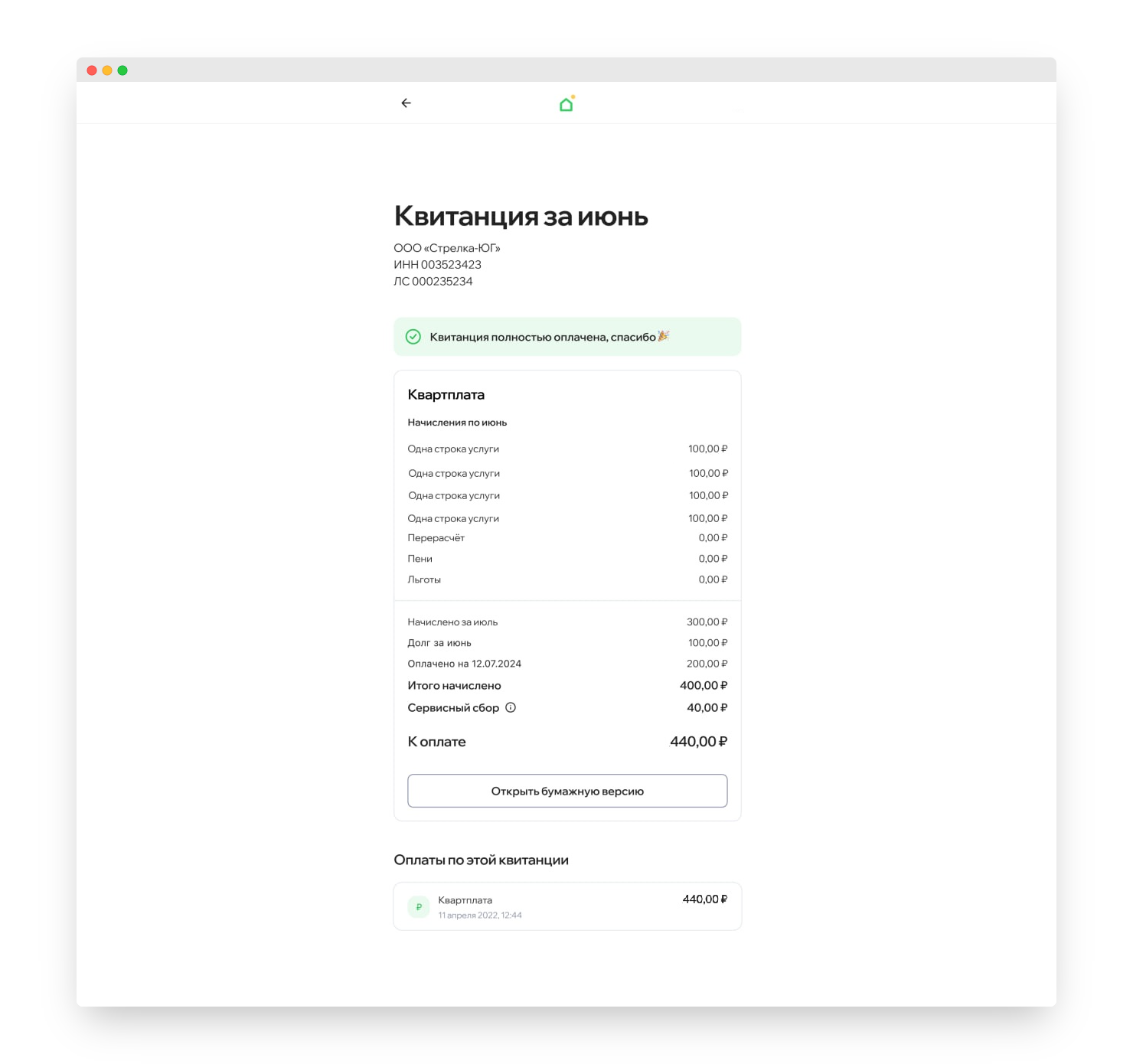 Готово! Квитанция добавлена в ваш личный кабинет.