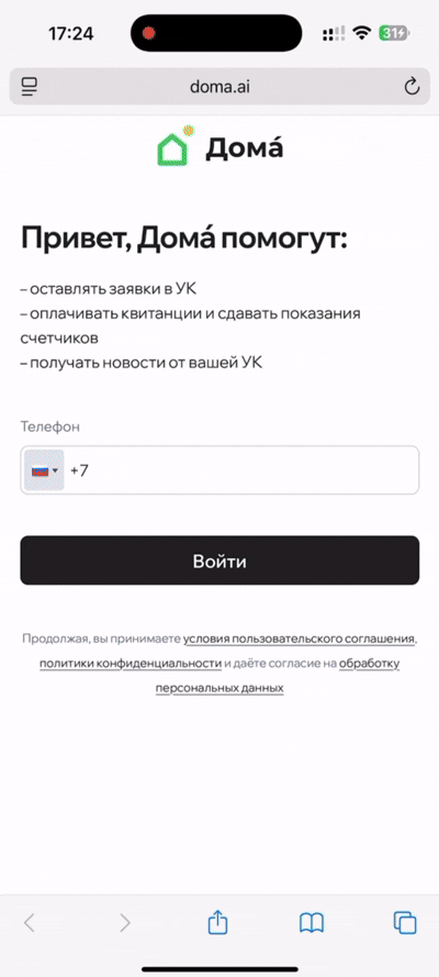 Для начала добавьте ярлык сайта m.doma.ai на экран «Домой» с помощью функции «Поделиться»: