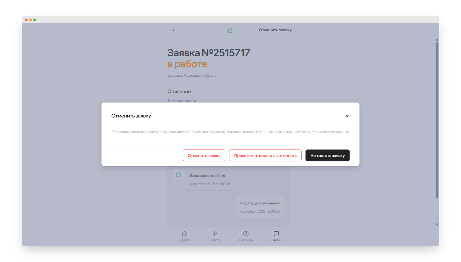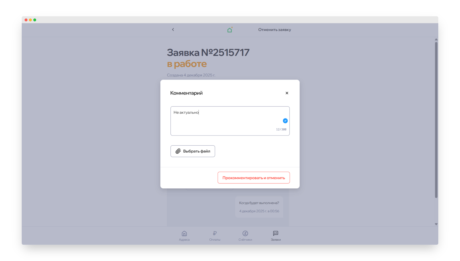 - Нажмите на кнопку «Отменить заявку» или «Прокомментировать и отменить».