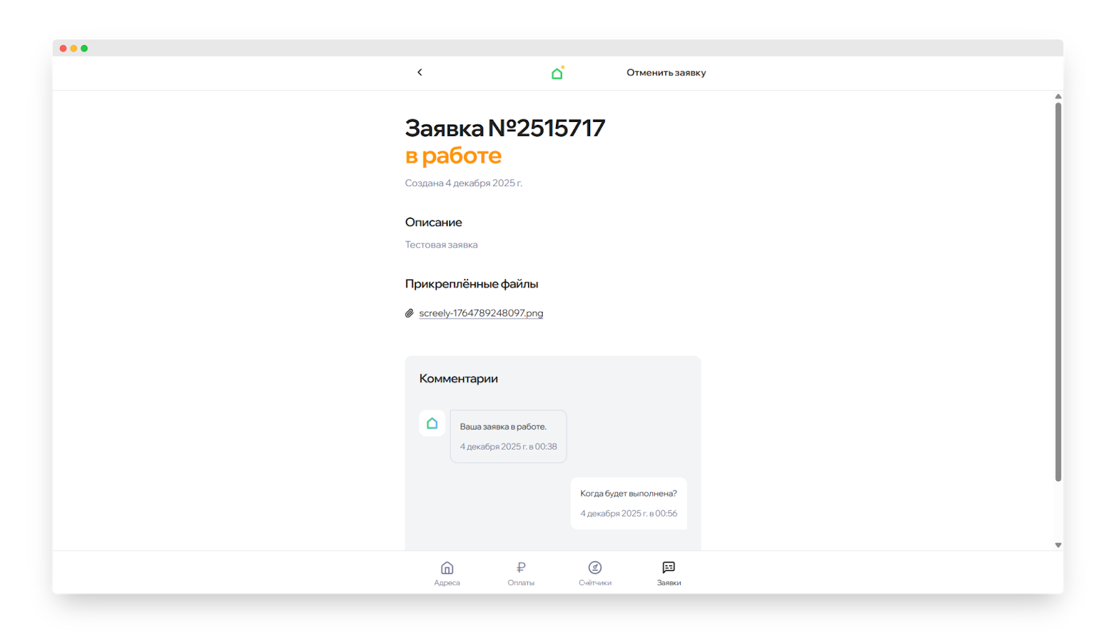 - Отложена — что-то помешало выполнить заявку прямо сейчас. Причины можно узнать у управляющей компании.