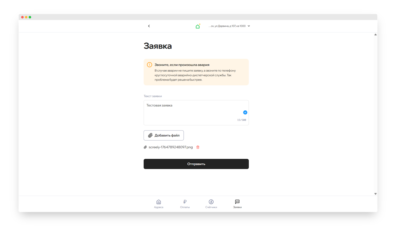Как отправить заявку в веб-версии мобильного приложения жителя