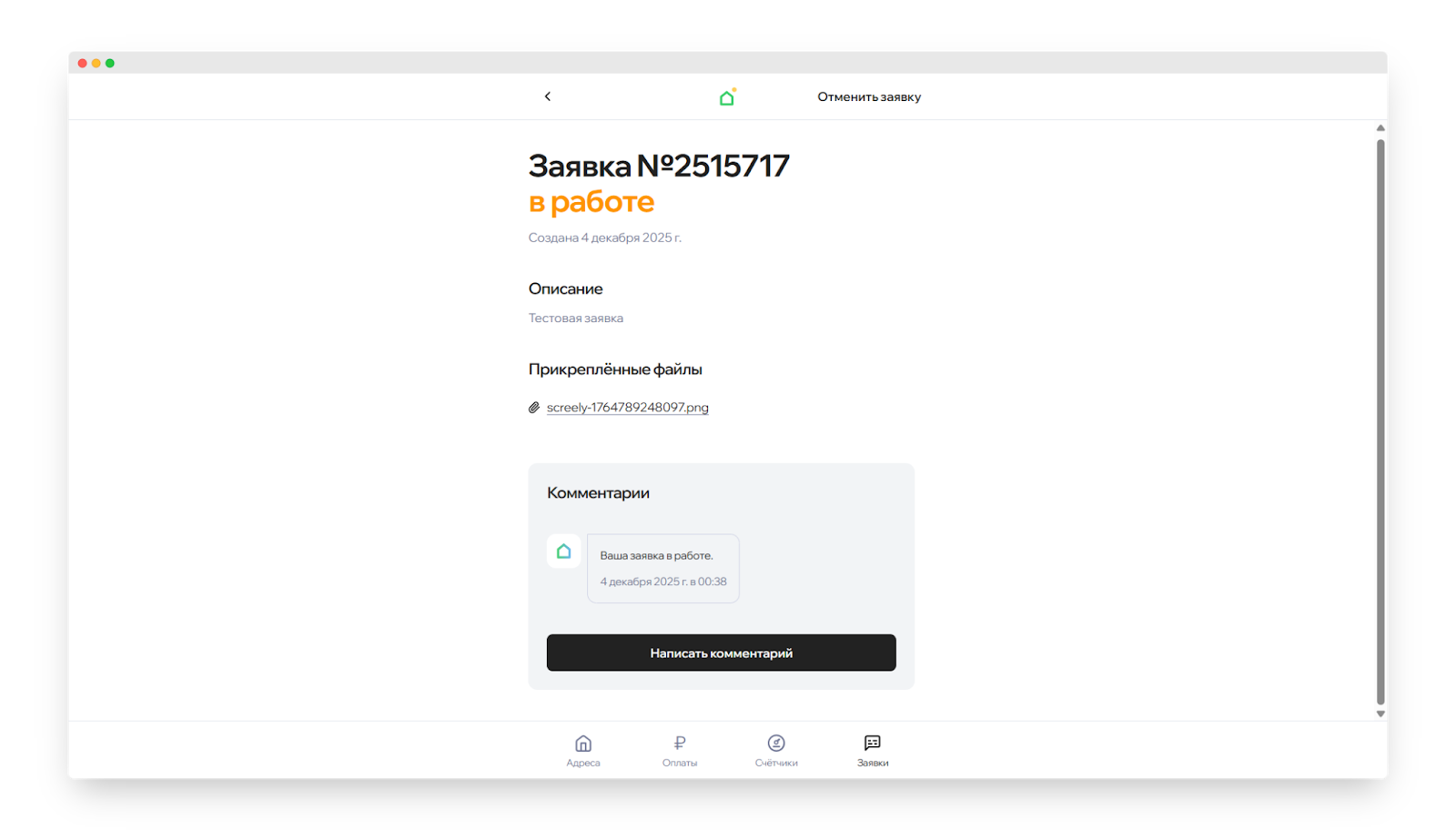 Чтобы ответить в заявке, нажмите кнопку «Написать комментарий».
