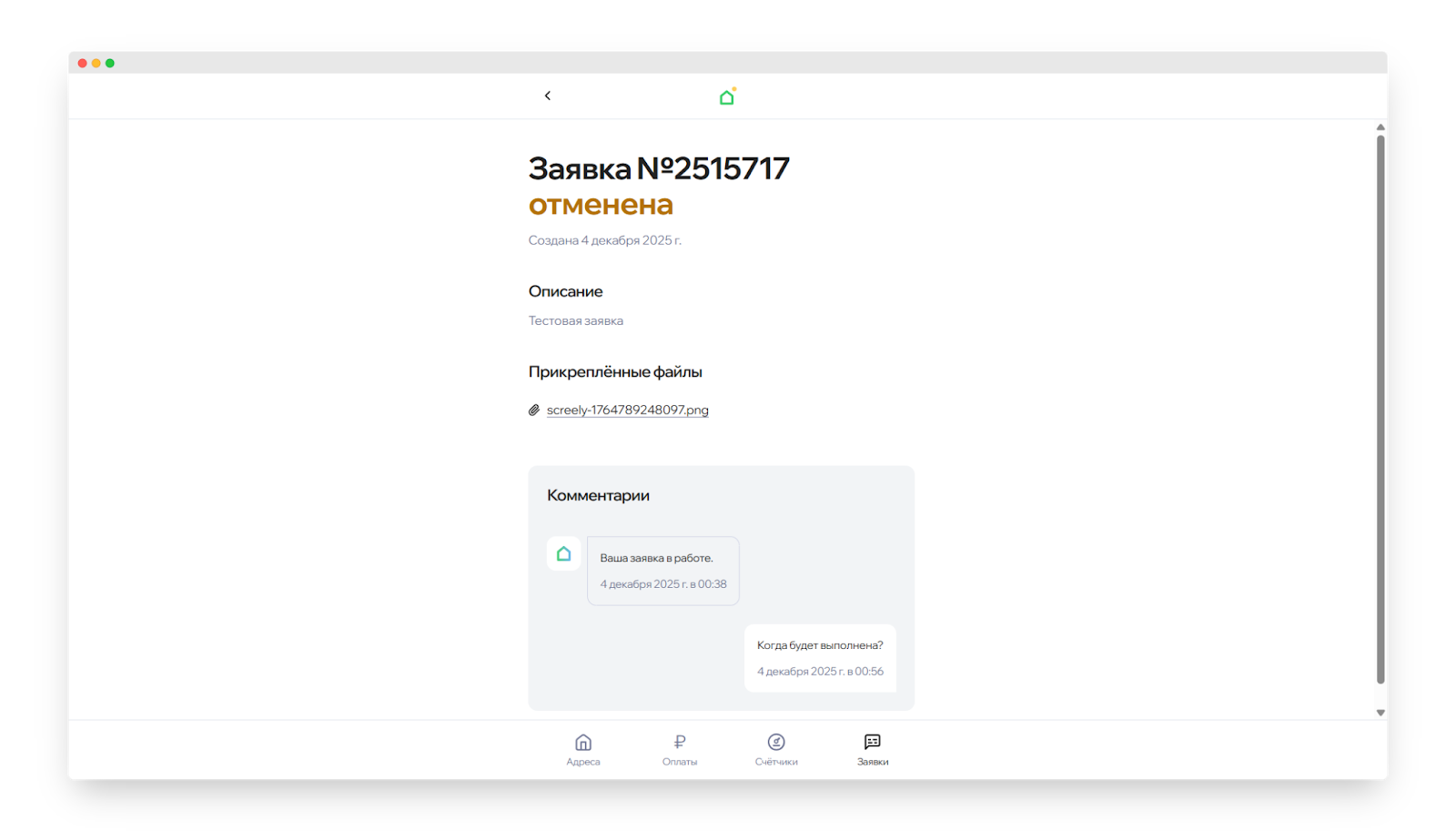 - Отменена — управляющая компания или вы отклонили выполнение заявки.