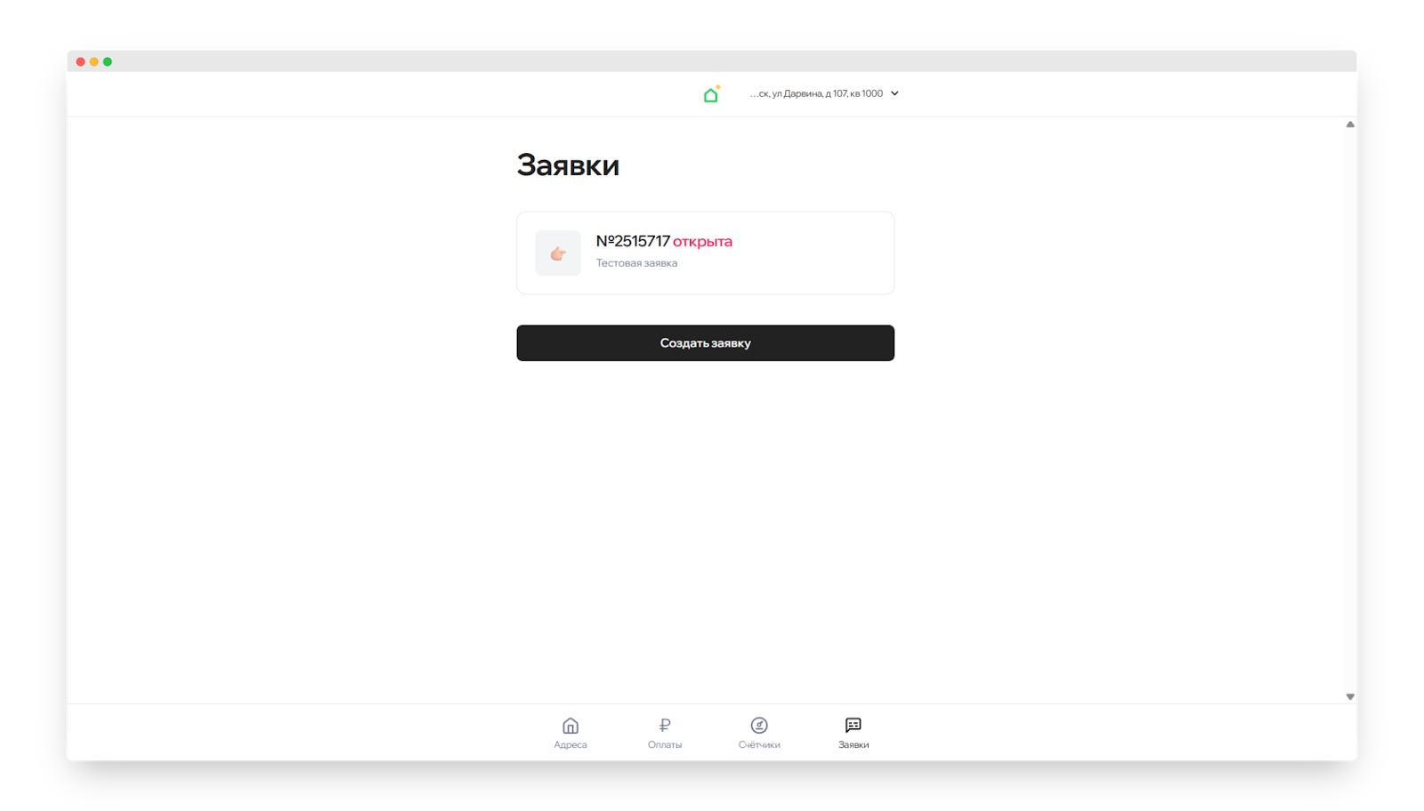 - Выберите раздел «Заявки» в нижнем меню.