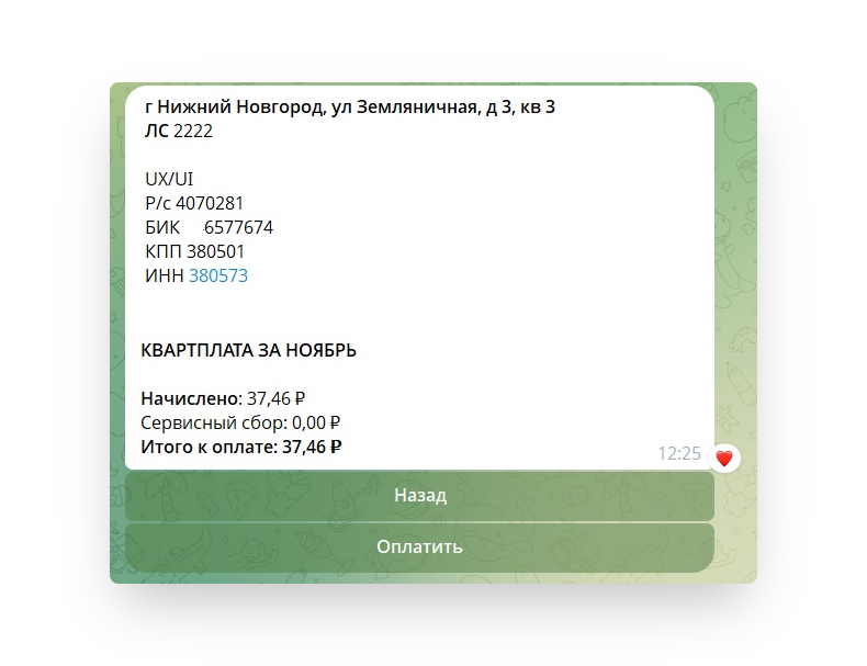 При оплате через Telegram-бот @DomaResidentBot комиссия теперь отображается отдельной строкой, что делает платежи более понятными.