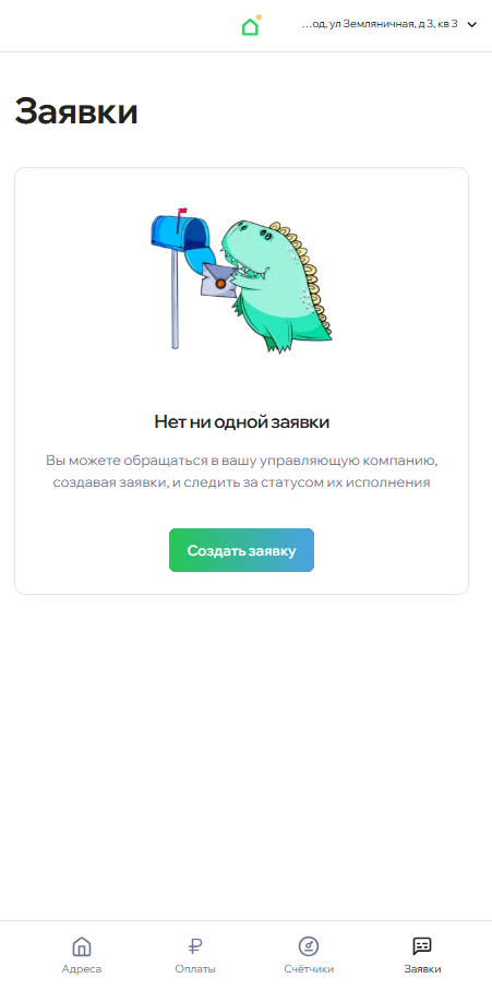 В веб-версии мобильного приложения жителя появилась возможность отправлять заявки в управляющую компанию и отслеживать их статусы.