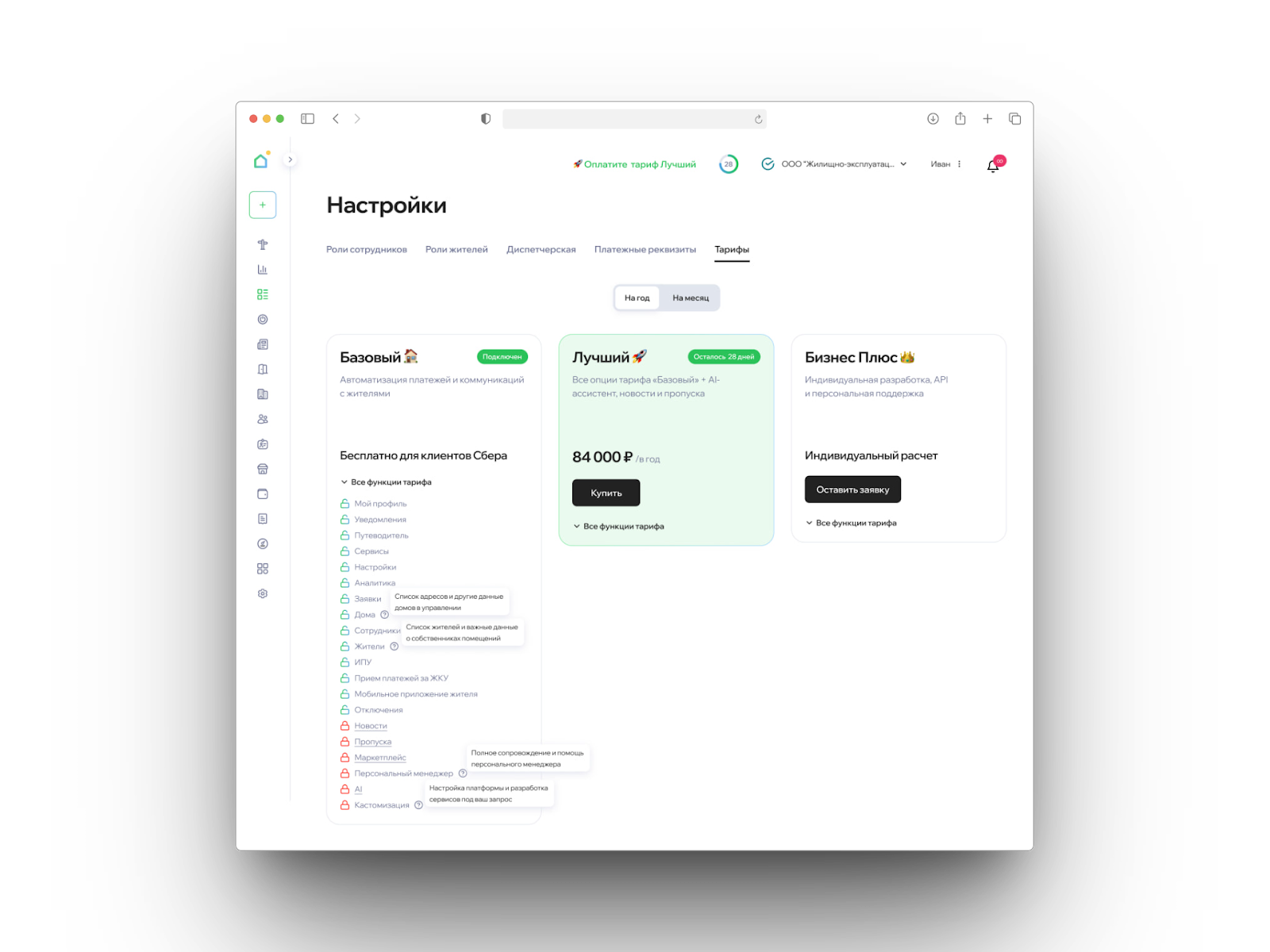 Часть функций теперь доступна по подписке. В системе предусмотрено три тарифа: Базовый, Лучший и Бизнес Плюс. Посмотреть доступные тарифы можно в разделе «Настройки» → «Тарифы», а также в статье «Подписка и тарифы». «Подписка и тарифы».