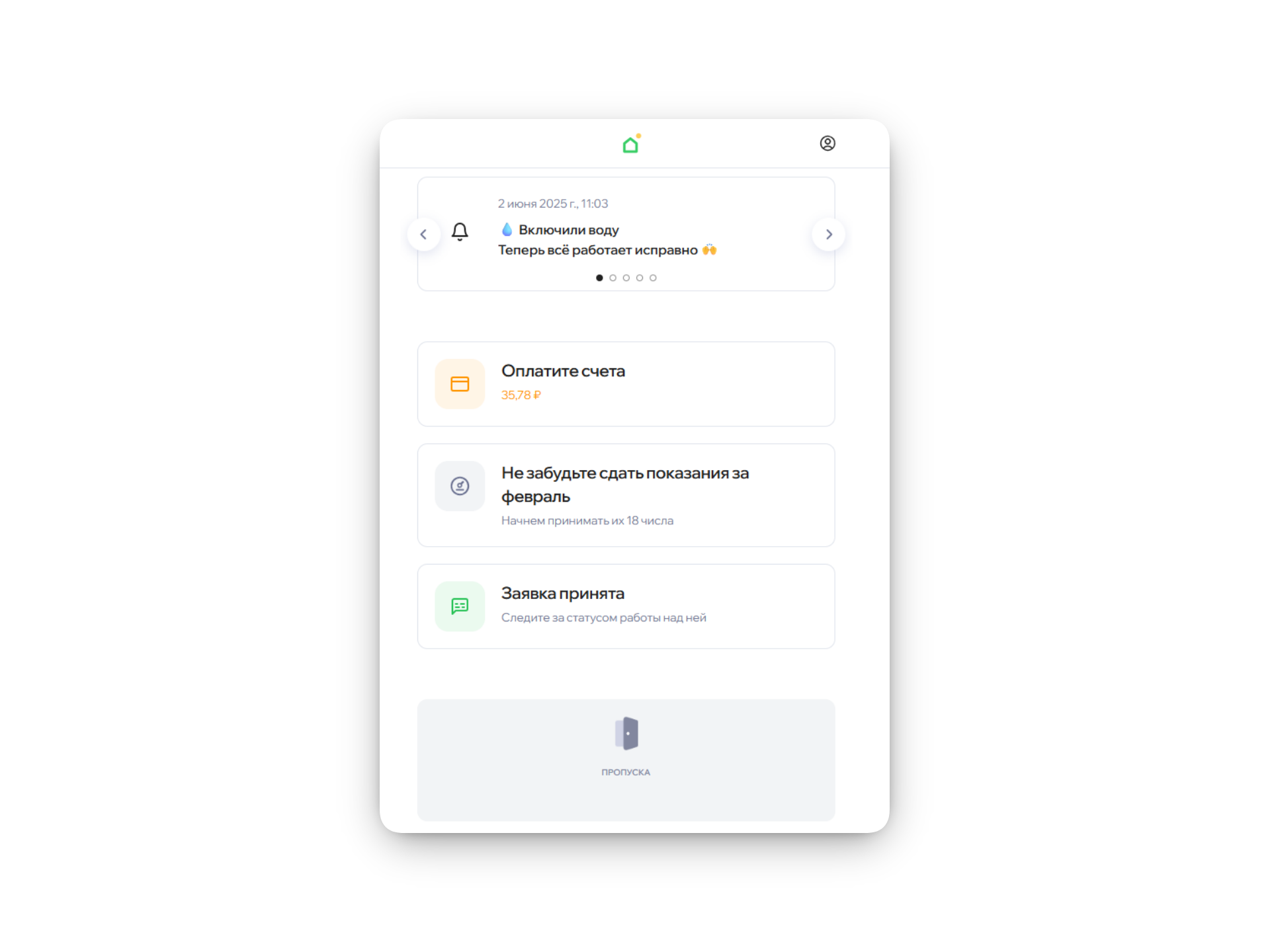 В разделе «Адреса» появилась информация о статусе заявки. Если по обращению была проделана работа, то вы увидите это на главном экране.