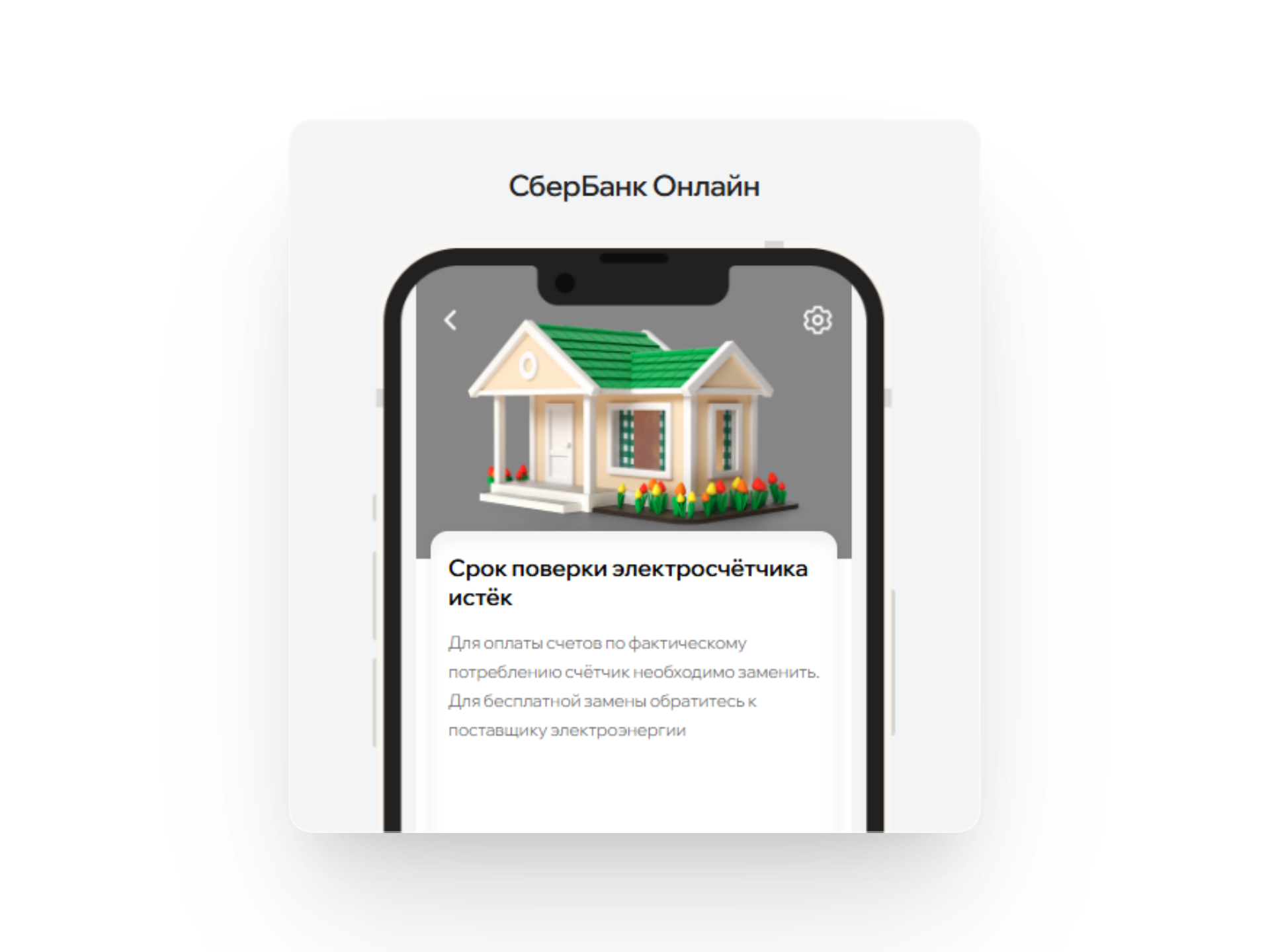 Теперь в приложение СберБанк Онлайн можно отправить новость об истекающем сроке поверки электросчетчика. С полным списком шаблонов вы можете ознакомиться по ссылке.